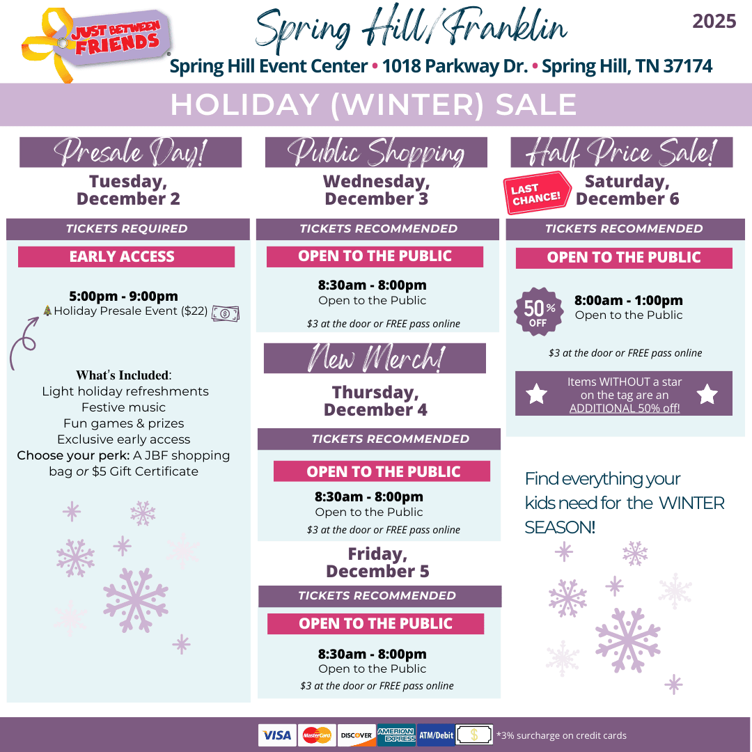 ​Spring Hill Event Center​1018 Parkway Dr.​Spring Hill, TN 37174​​Join our email list for additional sale details and to receive special offers!​